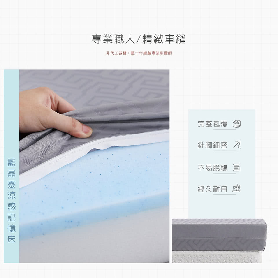 - 【品名】House Door 好適家居 天然防蚊防蹣表布-藍晶靈涼感舒壓記憶床墊10公分厚